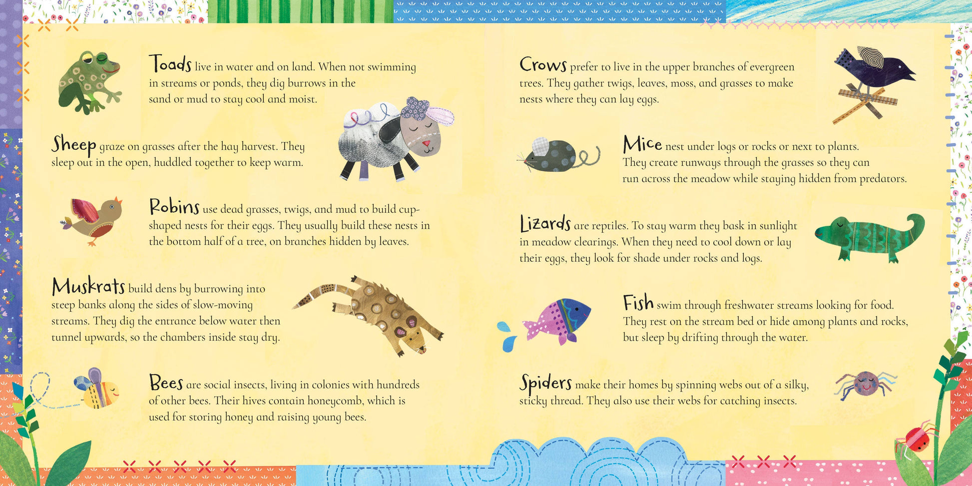 Further learning with two full pages of endmatter dives deeper into the different types of creatures found in a meadow.